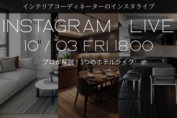 【インスタライブ】プロが解説!3つのホテルライクの作り方。インテリアコーディネーターによるインスタライブは10/3(金)18時から!