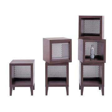 リビングに一つ置くだけで、十分存在感を放つ独特なデザインです。特に背板のアルミニウムには、水玉模様のようなパンチング加工を施し、向こうに風が抜けるような開放感さえ感じさせます。