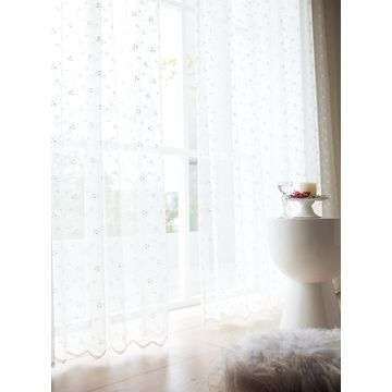 裾に施されたスカラップも素敵。風に吹かれて美しく揺れます。真っ白な家具とともにフェミニンなコーディネイトはいかがでしょうか。